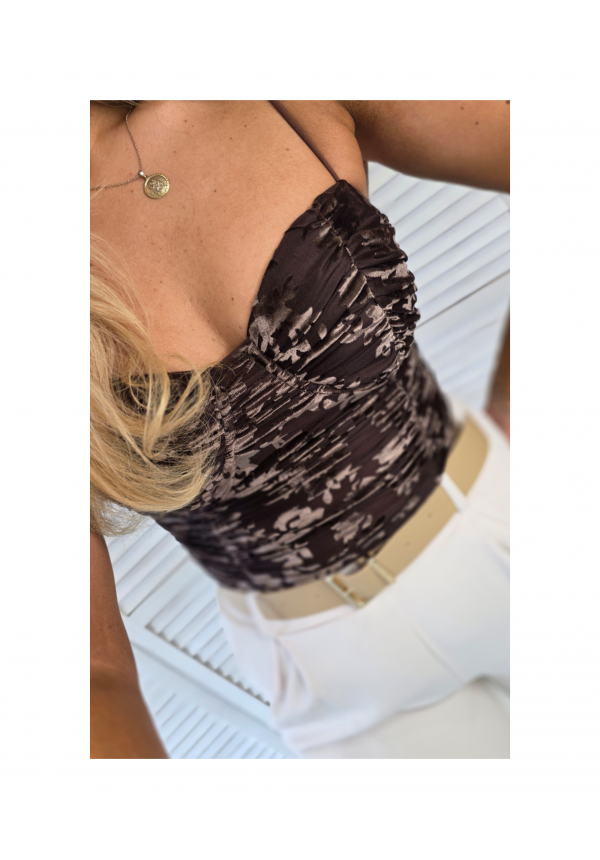 SASSY SILHOUETTE RUCHED VELVET BUSTIER - CHOCOLATE