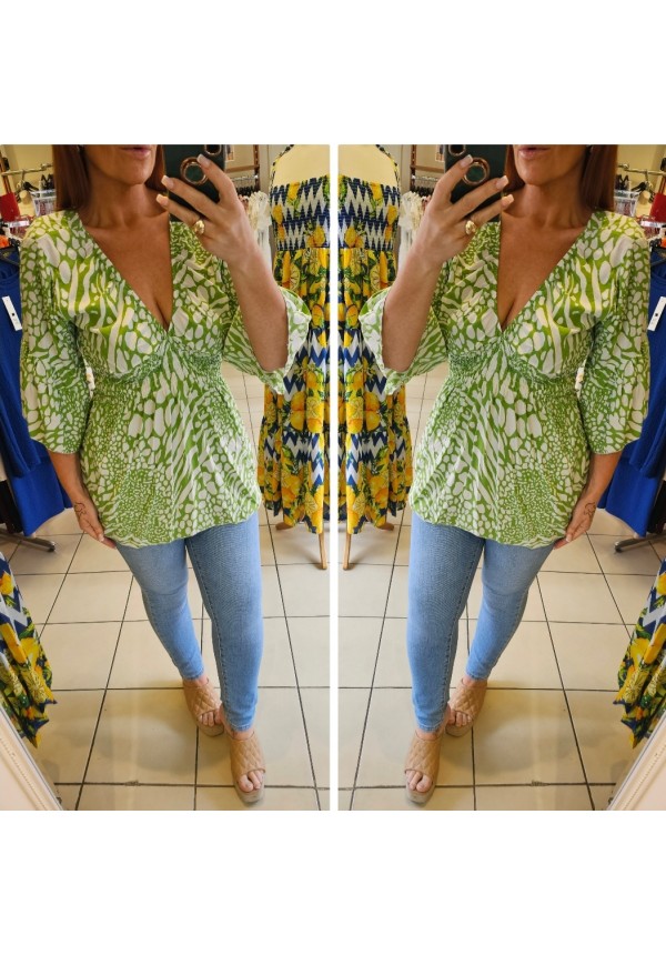 STEVIE FLUTED SLEEVE REVERSIBLE TOP - LIME/WHITE