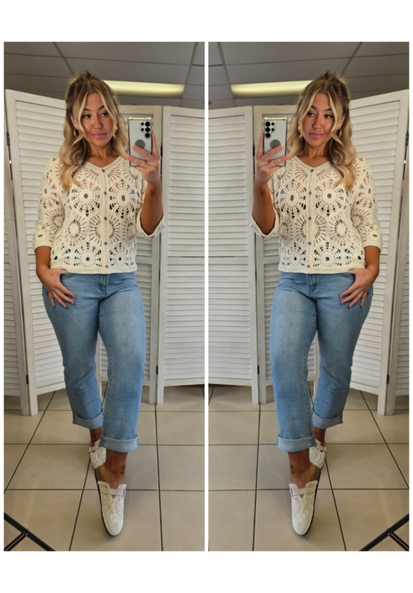 Floaty, feminine, and effortlessly free-spirited — the Willow Weave Top is your go-to for that dreamy boho feel. Crafted in a delicate crochet knit, it features beautifully airy stitching and soft, 1/4 sleeves that move with you for that relaxed, undone silhouette.