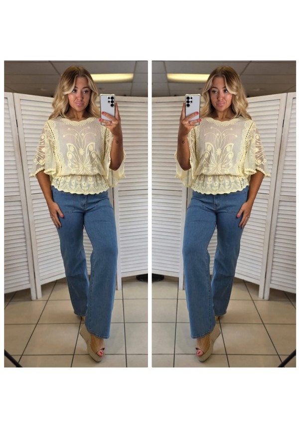 • Product Code: ANGELS SECRET EMBROIDERED TOP - SOFT LEMON
