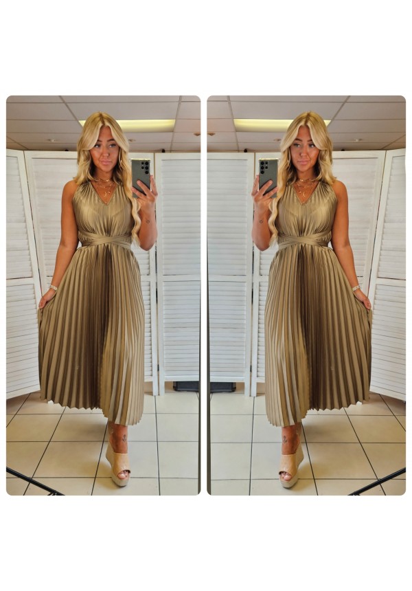 SECRET SOIRÉE PLEATED DRESS - TAN