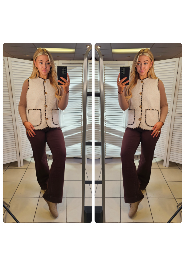 Step into your effortless era with this textured teddy waistcoat — the ultimate blend of cosy charm and cool-girl confidence. Finished with contrast trim and easy slip-on styling, it adds instant attitude to even the simplest outfit. Layer it over your basics, pair it with flares, or throw it on for that “I just look this good” energy. This is good behavior… with a stylish twist.