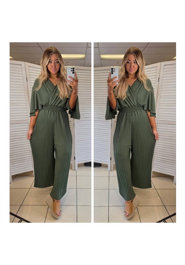 FLUTTER AND PLEAT JUMPSUIT - KHAKI