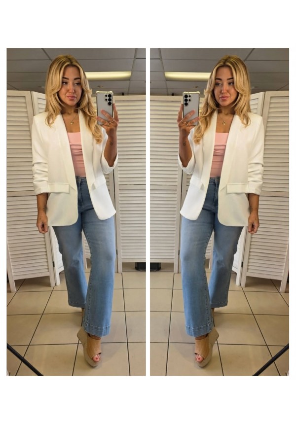 A COUTURE CLASSIC RUFFLE SLEEVE BLAZER - WHITE