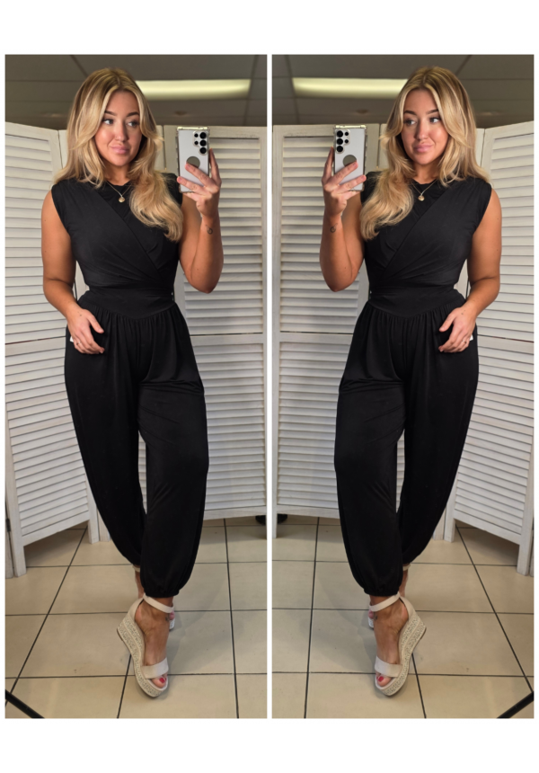 The ultimate “looks like effort, feels like loungewear” moment. Designed with a soft wrap-style top and a cinched waist that flatters in all the right places, this co-ord gives the illusion of a jumpsuit while keeping things effortlessly cool. The draped fabric flows with you, creating that relaxed, put-together silhouette we all love.