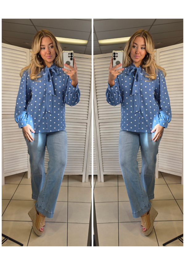 DOTTY DARLING BOW SHIRT - BLUE