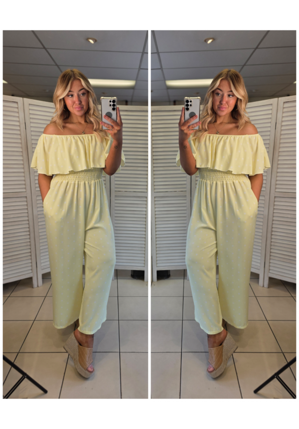 • Product Code: CURVY GIRLS BARDOT JUMPSUIT - POLKA DOT - SUNSHINE