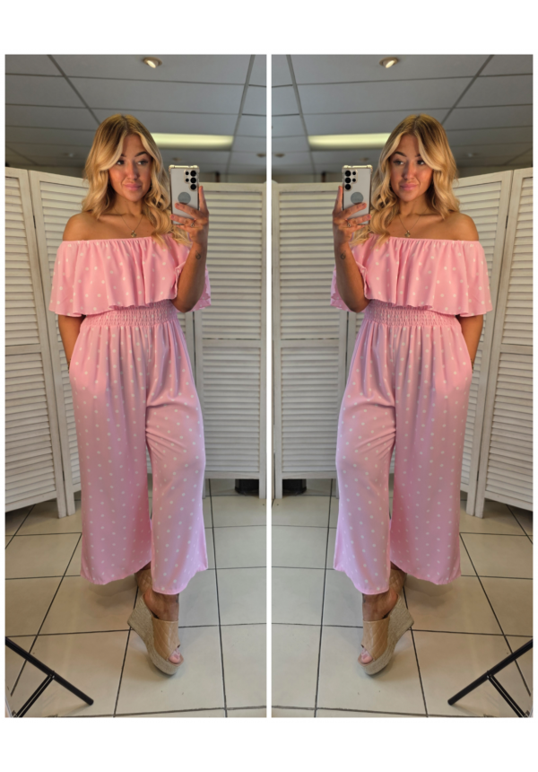 - Product Code: CURVY GIRLS BARDOT JUMPSUIT - POLKA DOT - PINK