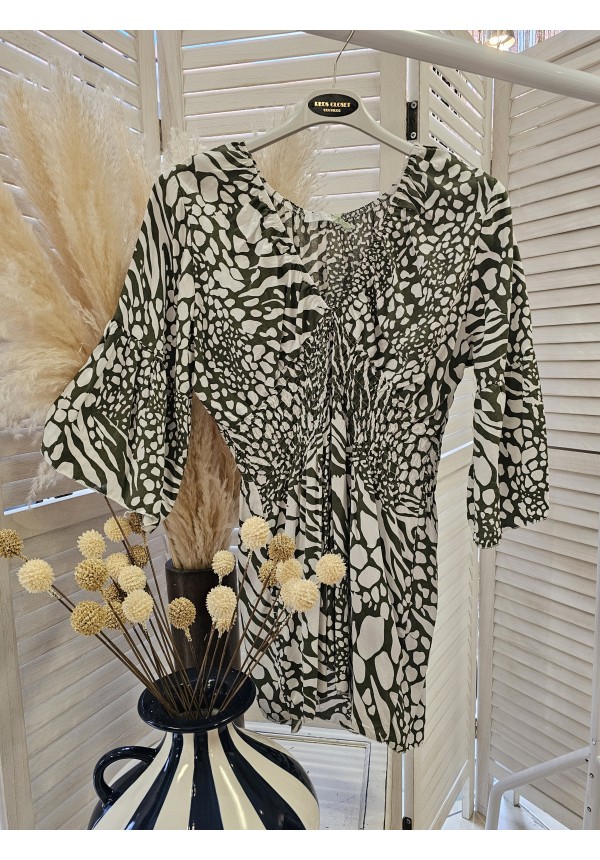 • STEVIE FLUTED SLEEVE REVERSIBLE TOP - KHAKI/WHITE