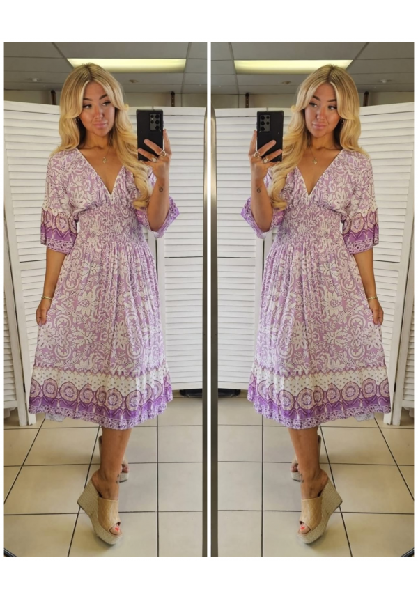 STEVIE FLUTED SLEEVE MIDI DRESS - SECRET GARDEN PURPLE