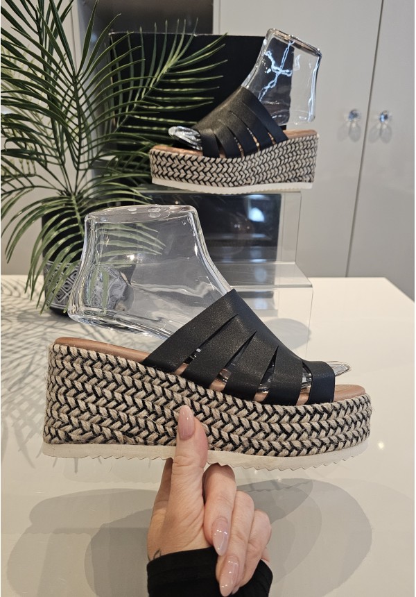 SOLE SUMMER WOVEN WEDGE - BLACK SOLE SUMMER WOVEN WEDGE - BLACK