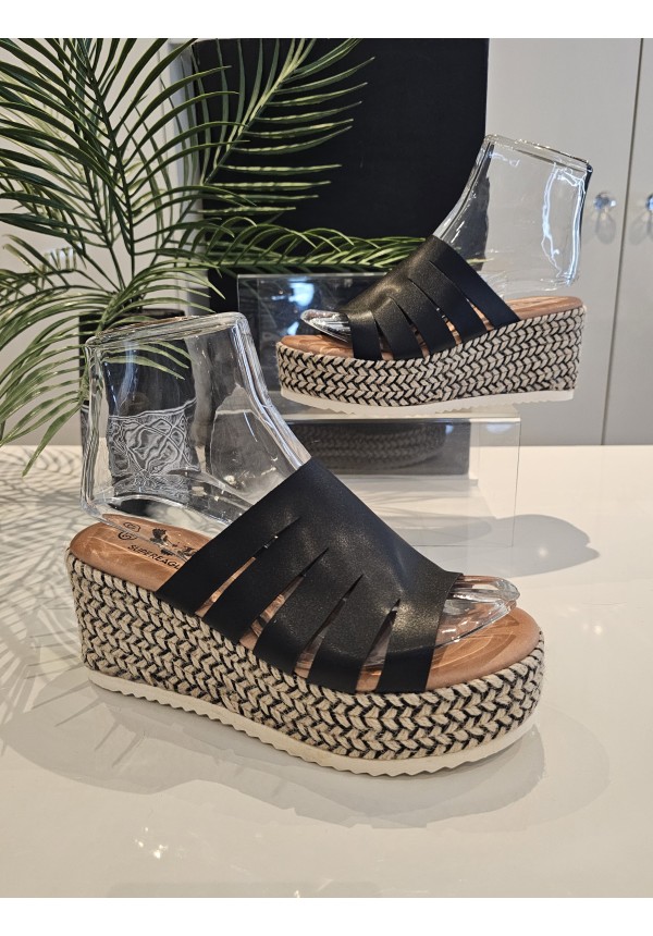 SOLE SUMMER WOVEN WEDGE - BLACK